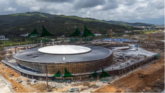 珠海橫琴國際網(wǎng)球中心總用地面積約14.8萬平方米,位于國務(wù)院批準(zhǔn)的第三個(gè)國家級(jí)新區(qū)——珠海橫琴新區(qū)中部。一期占地面積約6.1萬平方米,建筑面積約2.84萬平方米,場館概念方案由網(wǎng)球場館設(shè)計(jì)領(lǐng)域全球領(lǐng)先的POPULOUS公司設(shè)計(jì),中心將建設(shè)成為國際一流的網(wǎng)球場館。總包為三局公司,場館屋面材料采用用金屬材料及建筑PTFE膜材,主場館膜材面積3800㎡。